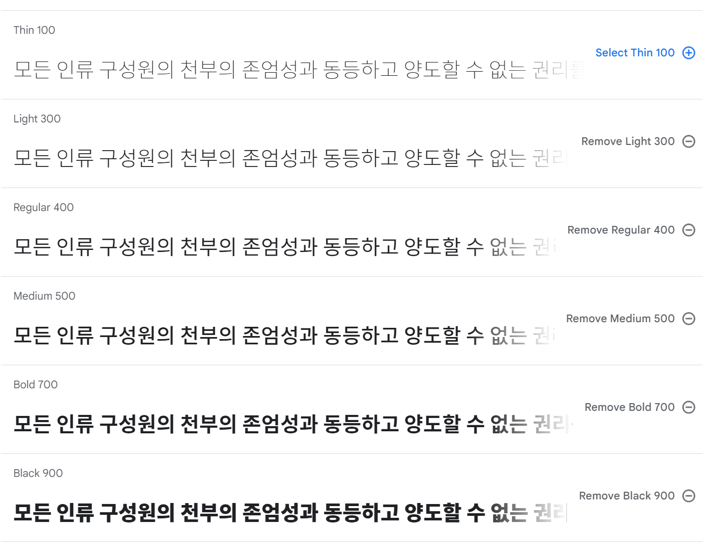 폰트의 굵기를 단계별로 세밀하게 표현할 수 있어 폰트로 문서의 강약을 조절할 수 있습니다.