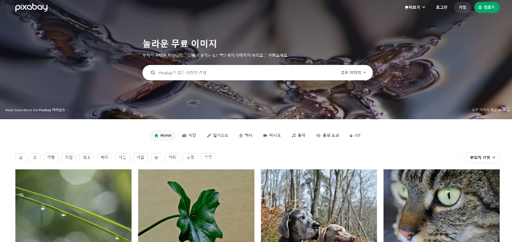 예전에는 한글 검색이 안 되는 경우가 많았으나 요즘은 거의 모든 사이트에서 한글 검색이 가능하니 사용하기가 훨씬 수월해진 것 같습니다. 역시나 방대한 이미지를 보유한 사이트입니다. 이미지 하단에 비슷한 이미지를 함께 검색해 주니 사용하기 더욱 편리합니다.